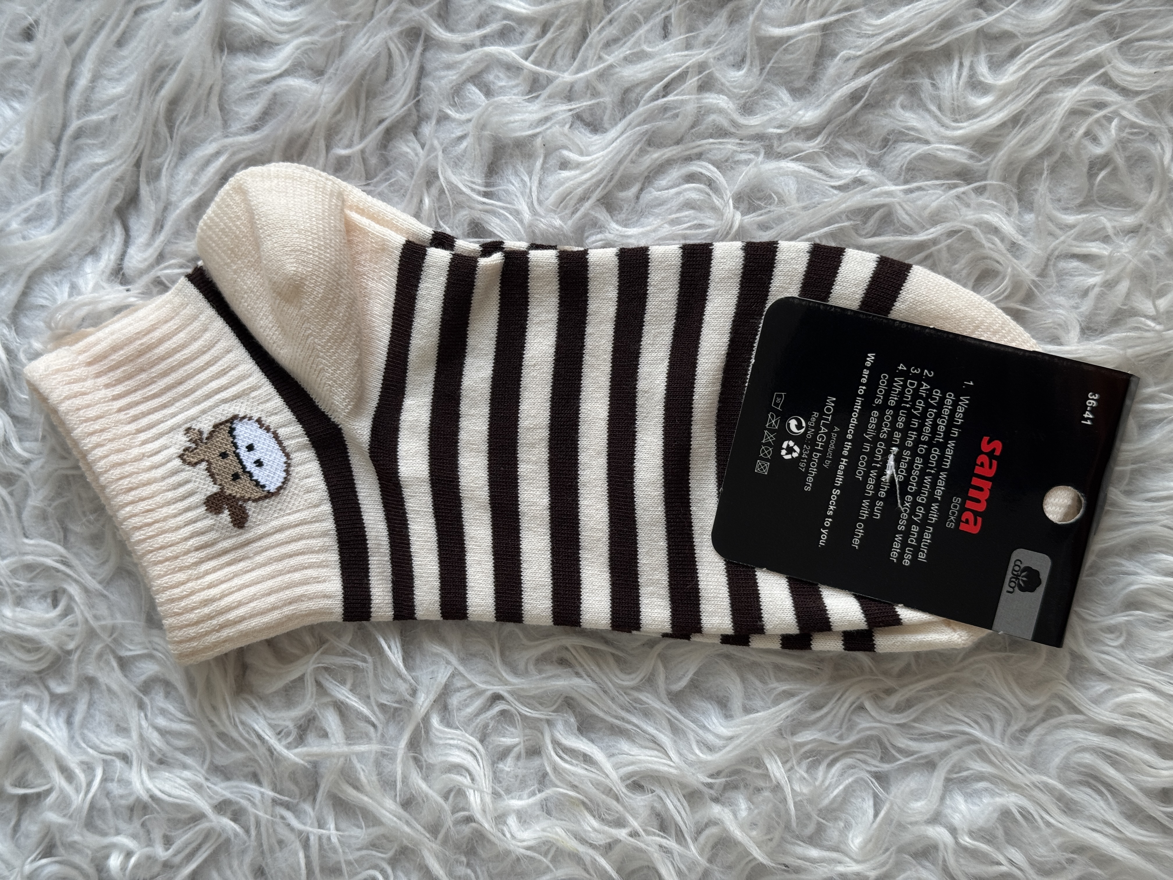 جوراب قهوه ایی طرح دار