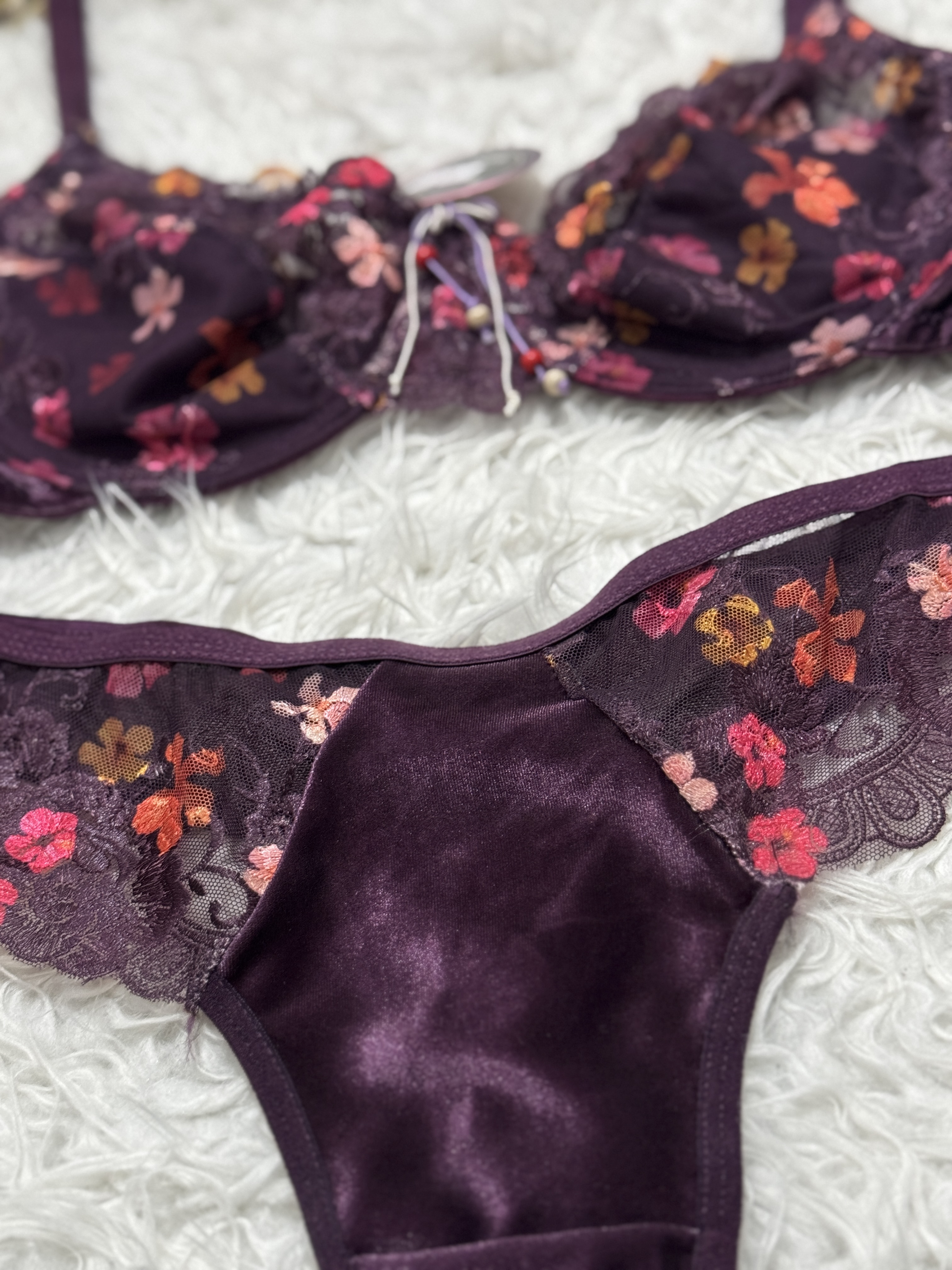 ست شورت و سوتین مخمل دانتل